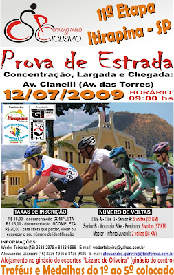 OBS: Todas as categorias largarão as 09h00m, com intervalos de 5 minutos entre uma e outra.Carros apoio, será liberado somente 3 veiculos, por categoria!!!